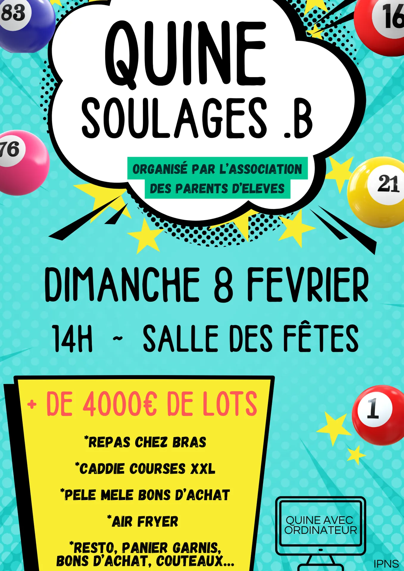 Quine organisé par l’APE à 14h à la Grange de Soulages Bonneval